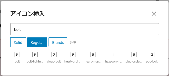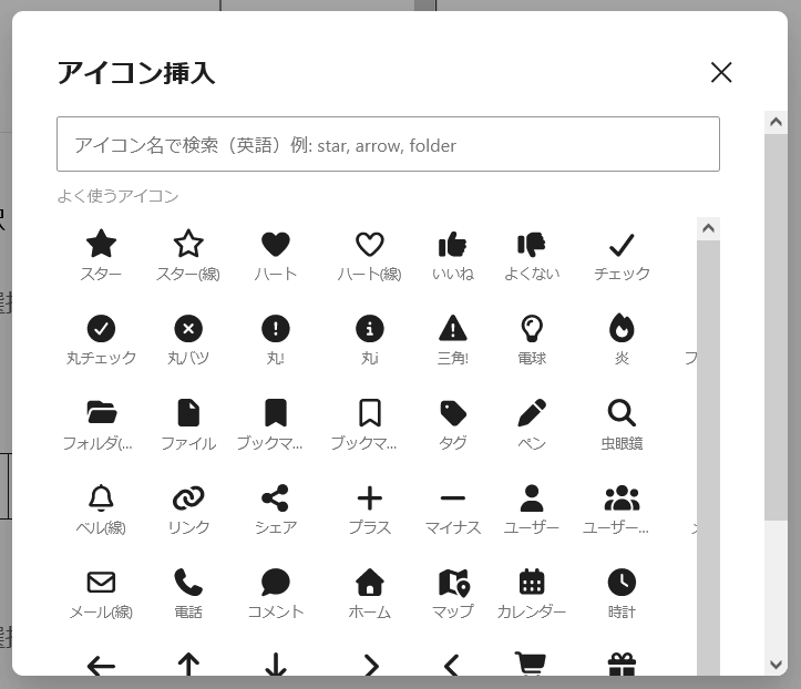 検索ワードはアイコン名でする必要があるので、英語で入力してください。