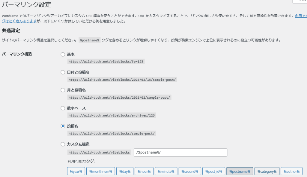 設定 → パーマリンク