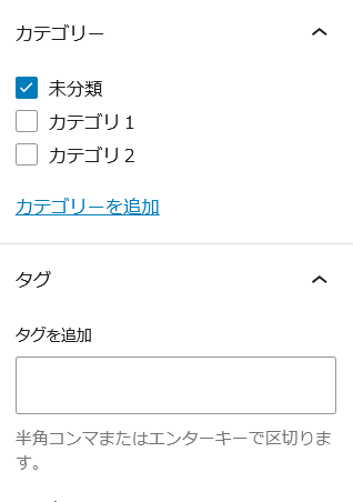 カテゴリーや、タグを設定する。