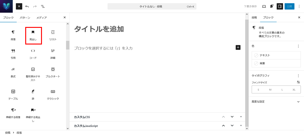 見出しブロックの挿入