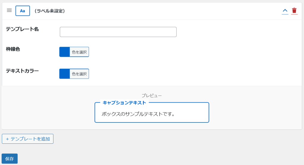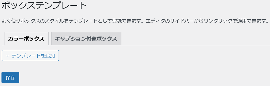 キャプション付きボックスタブを選択して、「+テンプレートを追加」をクリック