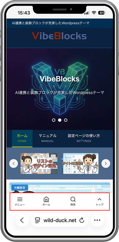 モバイル表示時に画面下部に固定表示されるナビゲーションバーです。