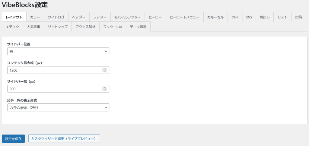 サイト全体のレイアウトの設定です。