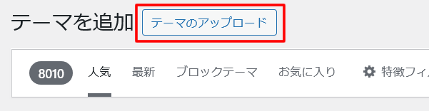 WordPressのダッシュボードにログインし、左メニューの、「外観 → テーマ」をクリック。