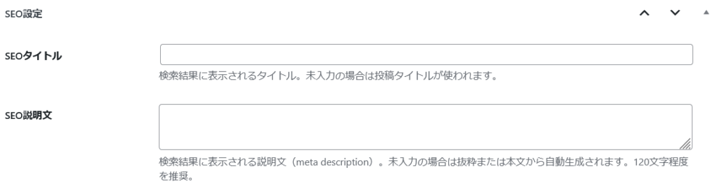 未入力の場合は記事タイトルがタイトルに、抜粋または本文からDescriptionに適用されます。